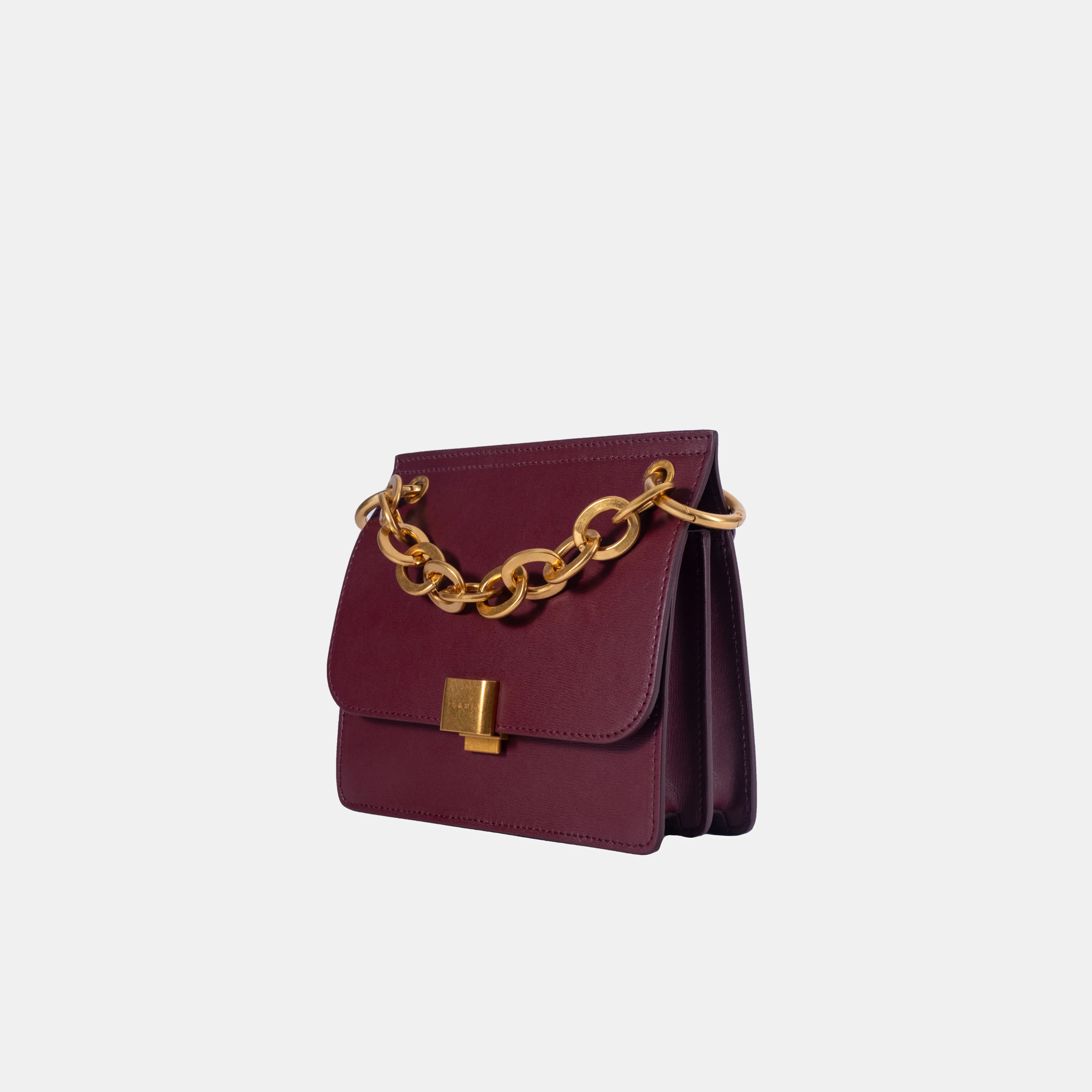 - Détails : L'élégante poignée courte en chaîne dorée, entièrement amovible, assure une agréable tenue à la main, tandis que les finitions dorées subliment le design raffiné du sac.